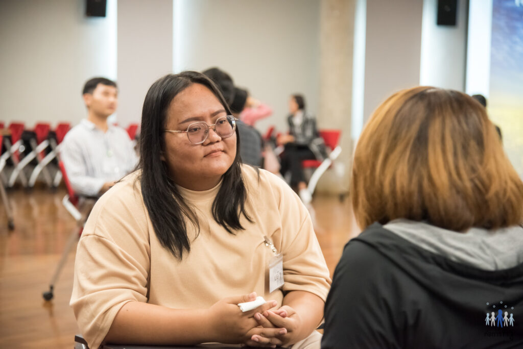 “โมดูลแรกที่ครูเมย์เจอคือ ครูคือมนุษย์ เหมือนชวนเราหันกลับมามองตัวเองในฐานะมนุษย์คนหนึ่ง ให้คุณค่าในตัวเอง จำได้ขึ้นใจคือคำพูดของ อ.น้องที่บอกว่า ‘เราต้องอนุญาตให้เราได้เป็นตัวเราเอง’ ตอนนั้นครูเมย์รู้สึกว่า เชือกที่ขึงจนถึงตึงอยู่ของครูเมย์ มันขาดดังเป๊าะ ความกังวล เหนื่อยล้า สิ่งที่เราตั้งคำถามสำหรับความเป็นครู มันได้รับการเฉลย ครูเมย์ไม่รู้จะอธิบายเป็นคำพูดอย่างไร เหมือนคำถามมันมาในจังหวะที่ครูเมย์กำลังพยายามหาคำตอบ คำอธิบาย ในบรรยากาศที่ผ่อนคลาย ในพื้นที่แห่งการรับฟังอย่างแท้จริง”